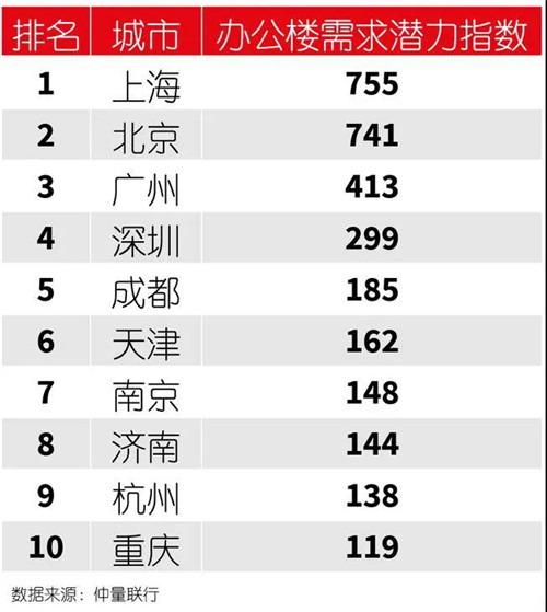 通過研究表明,中國經(jīng)濟總量前50大城市已建成辦公樓的總體量,距離潛在需求上限仍有超過6000萬平方米的差距,4座一線城市的總供應(yīng)缺口高達3000萬平方米以上,中國辦公樓市場的整體供應(yīng)端還有20%左右的增長空間。
