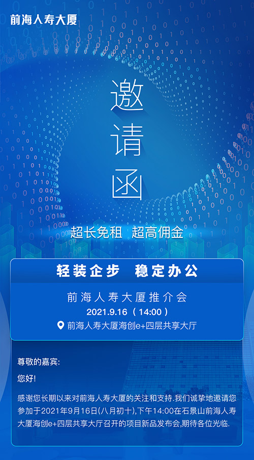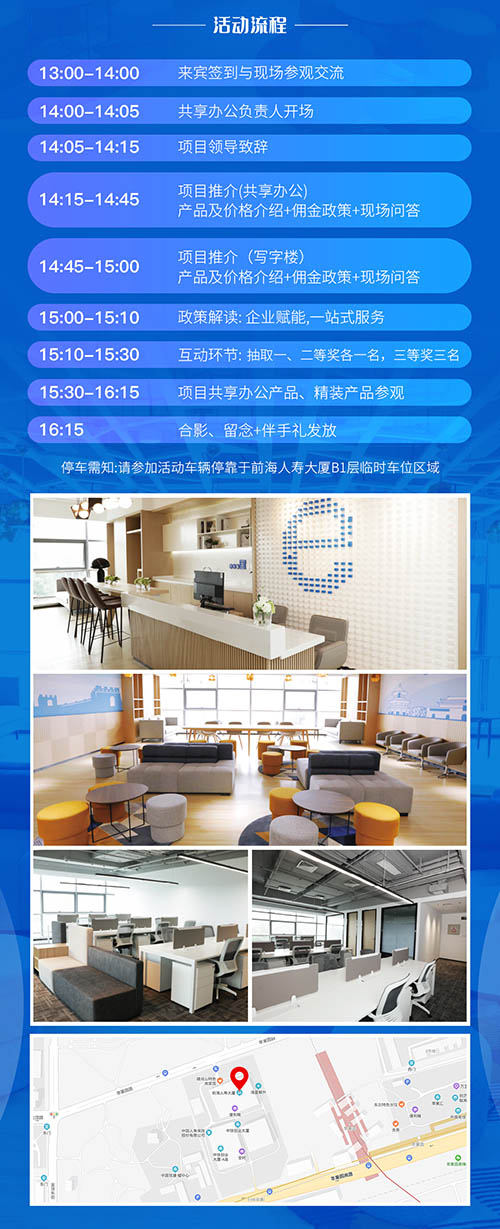 房訊網訊 9月16日下午,前海人壽大廈推介會將在項目4層海創(chuàng)e+共享大廳舉辦,誠摯邀約北京渠道代理精英、選址企業(yè)代表蒞臨。項目方將就樓宇精裝辦公產品以及共享辦公產品海創(chuàng)e+進行詳細的介紹,并分享項目配套熱點、優(yōu)惠政策、招商策略等內容。