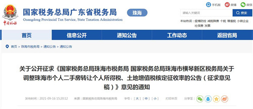 房訊網(wǎng)訊 國(guó)家稅務(wù)總局珠海市稅務(wù)局起草了《國(guó)家稅務(wù)總局珠海市稅務(wù)局 國(guó)家稅務(wù)總局珠海市橫琴新區(qū)稅務(wù)局關(guān)于調(diào)整珠海市個(gè)人二手房轉(zhuǎn)讓個(gè)人所得稅、土地增值稅核定征收率的公告(征求意見稿)》,并向社會(huì)公開征求意見。公告從2021年11月1日起執(zhí)行。