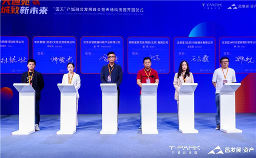 本次峰會(huì)的重頭戲之一,就是天通苑首個(gè)新文娛新消費(fèi)主題園區(qū)天通科技園的正式開園,中關(guān)村科技園區(qū)昌平園工委委員、管委會(huì)副主任劉紅蕾、昌平區(qū)回龍觀天通苑地區(qū)專項(xiàng)治理工作辦公室綜合協(xié)調(diào)組組長魯晨、昌平區(qū)天通苑北街道辦副主任朱飛、昌發(fā)展常務(wù)副總經(jīng)理王彧、昌發(fā)展子公司眾智鼎昌高級(jí)副總經(jīng)理、天通科技園項(xiàng)目負(fù)責(zé)人金明、昌發(fā)展子公司眾智鼎昌高級(jí)副總經(jīng)理馮立峰共同啟動(dòng)開園儀式。金明表示,天通科技園是昌發(fā)展踐行"回天行動(dòng)計(jì)劃",于天通苑區(qū)域打造的"首座城市級(jí)產(chǎn)業(yè)綜合體項(xiàng)目",也是"騰籠換鳥"的一次深刻實(shí)踐,已經(jīng)匯聚50余家行業(yè)優(yōu)質(zhì)企業(yè),新文娛、新消費(fèi)產(chǎn)業(yè)生態(tài)已經(jīng)初步形成。