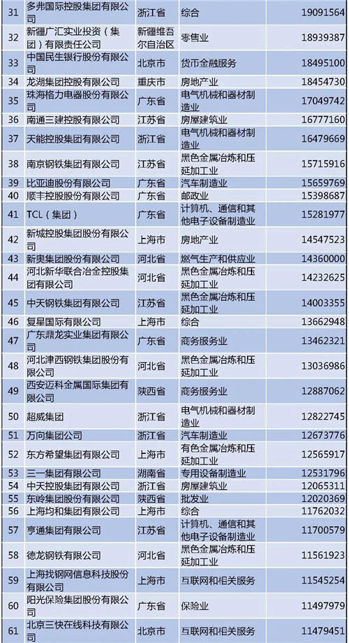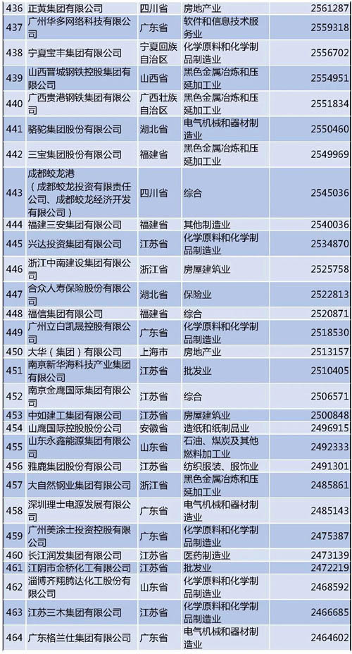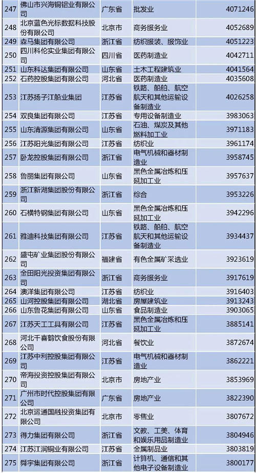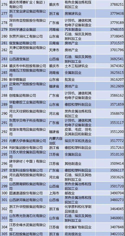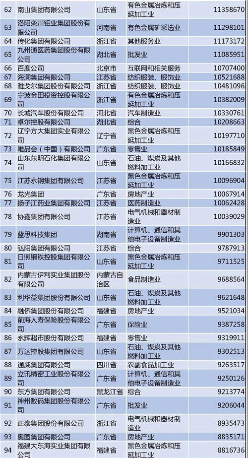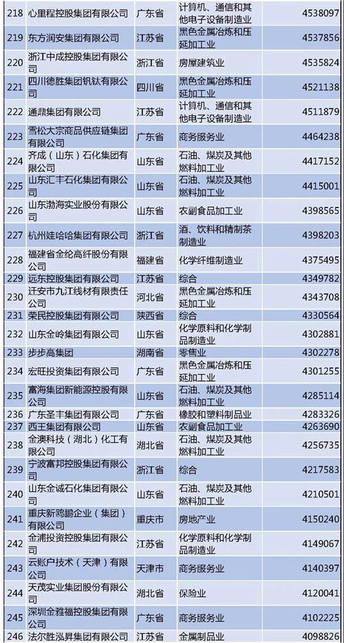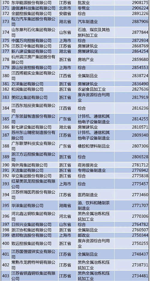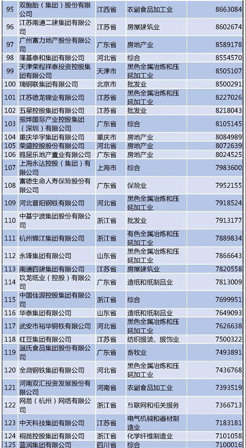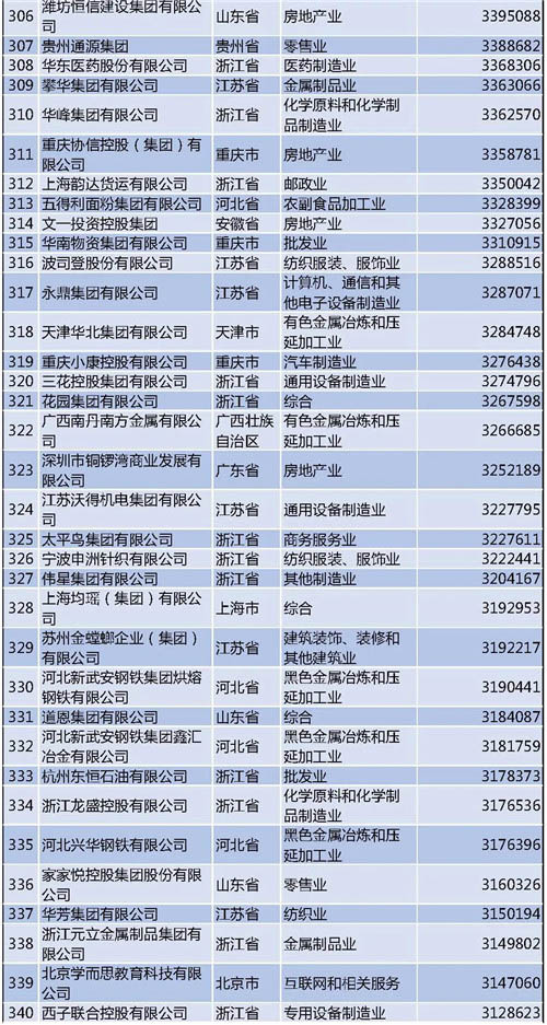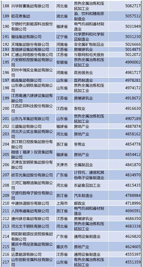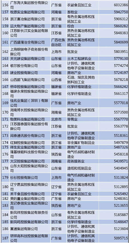 另外需要說明的是,今年的民營企業(yè)500強中有57家為新入圍企業(yè),其中有6家企業(yè)采用其披露的公開數(shù)據(jù)。退出榜單的企業(yè)主要由于未參加調(diào)研、營業(yè)收入未達到入圍門檻、不符合入榜條件等。
