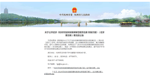 房訊網(wǎng)訊 近日,杭州住保房管局起草了《杭州市加快發(fā)展保障性租賃住房實(shí)施方案》,并于9月27日起在杭州市政府網(wǎng)站公開征求意見。