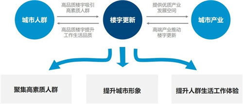 高力國(guó)際華北區(qū)副董事總經(jīng)理陳難認(rèn)為"831"新政體現(xiàn)了城市更新所具備的三個(gè)核心價(jià)值,即社會(huì)經(jīng)濟(jì)價(jià)值、城市經(jīng)濟(jì)價(jià)值和資產(chǎn)經(jīng)濟(jì)價(jià)值。社會(huì)經(jīng)濟(jì)價(jià)值體現(xiàn)在產(chǎn)業(yè)升級(jí)和消費(fèi)需求提升兩大方面,最終的影響是在城市GDP、稅收和就業(yè)方面的帶動(dòng)作用。城市經(jīng)濟(jì)價(jià)值體現(xiàn)在城市形象、居民幸福感和獲得感、人口素質(zhì)等方面。資產(chǎn)經(jīng)濟(jì)價(jià)值則更注重項(xiàng)目自身的再生價(jià)值,如樓宇再生價(jià)值。樓宇更新不僅能為產(chǎn)業(yè)提供更優(yōu)質(zhì)的發(fā)展空間,還可以吸引高素質(zhì)人才,提升城市產(chǎn)業(yè)聚集效應(yīng)。可以說(shuō),樓宇更新是城市發(fā)展和人口聚集的重要抓手,樓宇一邊承載著產(chǎn)業(yè)發(fā)展,一邊服務(wù)著辦公人群。從這個(gè)角度來(lái)講,樓宇改造的標(biāo)準(zhǔn)并不是越高越好,應(yīng)該更注重市場(chǎng)和客戶需求。