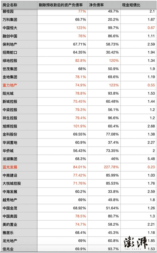 澎湃新聞根據(jù)30家上市房企2021年半年報披露的“三道紅線”情況做了數(shù)據(jù)整理,發(fā)現(xiàn)多家房企都正在努力讓自身進入“綠檔”安全區(qū)。
