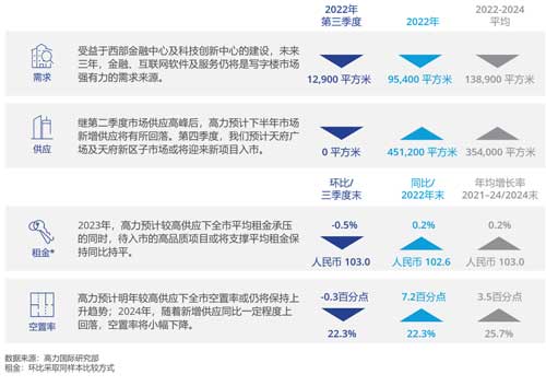 高力預(yù)計(jì)明年全市平均租金或?qū)⑼瘸制。一方面,考慮到2023年仍將有超30萬(wàn)平方米的新增供應(yīng)入市,一定程度上平均租金將承壓;另一方面,待入市項(xiàng)目中不乏有位于核心區(qū)域的高品質(zhì)項(xiàng)目,或?qū)⒅稳衅骄饨鸨3址(wěn)定。