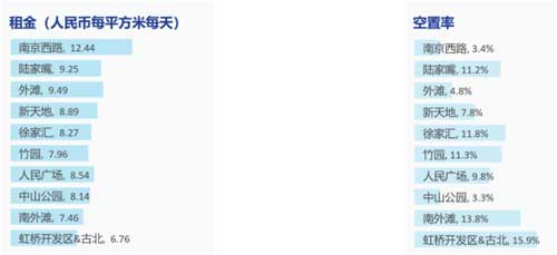 核心區(qū)子市場(chǎng)租金和空置率表現(xiàn)