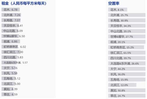 次中心區(qū)子市場(chǎng)租金和空置率表現(xiàn)