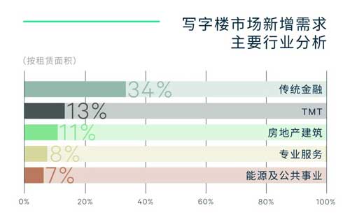 新增租賃需求中金融行業(yè)占比超過三成,穩(wěn)居行業(yè)排名第一。細(xì)分來看,國有金融投資平臺搬遷整合以及行業(yè)利好政策加速證券、保險公司釋放租賃需求,是金融行業(yè)在租賃市場保持活躍的主要原因。TMT與房地產(chǎn)建筑行業(yè)緊隨其后,伴隨著行業(yè)內(nèi)部結(jié)構(gòu)重塑,兩大行業(yè)的新租與退租需求均在行業(yè)占比中位居前列。