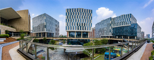 五重立體樓宇花園引入自然花、溪、風(fēng)等景觀,與外部生態(tài)景觀相得益彰,形成獨具特色的生態(tài)屬性,通過構(gòu)建下沉庭院、藝術(shù)中庭、連廊、露臺、屋頂花園五重植被,層次突出,成為獨具特色的“生態(tài)會客廳”,為員工休憩、商務(wù)會晤創(chuàng)造優(yōu)質(zhì)體驗場。