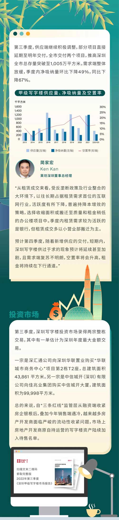 [提要]萊坊發(fā)布2022年第三季度《深圳甲級寫字樓市場報告》