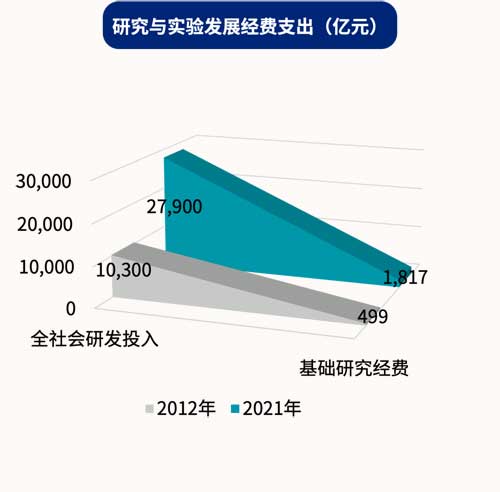 回望2012年以來的非凡十年,從黨的十八大提出要實(shí)施創(chuàng)新驅(qū)動發(fā)展戰(zhàn)略;十九大明確指出創(chuàng)新是引領(lǐng)發(fā)展的第一動力;二十大再次強(qiáng)調(diào)闡述科技是第一生產(chǎn)力、人才是第一資源、創(chuàng)新是第一動力。截止2021年,國家統(tǒng)計(jì)局?jǐn)?shù)據(jù)表明,過去十年是我國科技實(shí)力提升最迅速的時期,擁有科技投入力度空前、創(chuàng)新主體不斷壯大與自主創(chuàng)新成果強(qiáng)勁噴涌的特征。