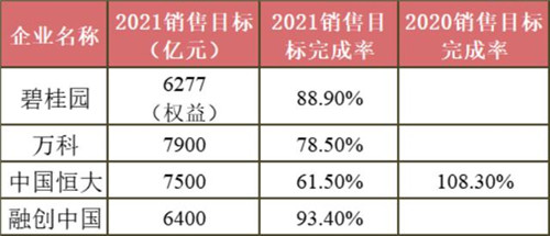 房地產(chǎn)數(shù)據(jù)平臺(tái)克而瑞發(fā)布的數(shù)據(jù)顯示,2021年百?gòu)?qiáng)房企目標(biāo)完成率遠(yuǎn)不及歷史同期,披露年度業(yè)績(jī)目標(biāo)的規(guī)模房企中,逾8成未完成目標(biāo)。