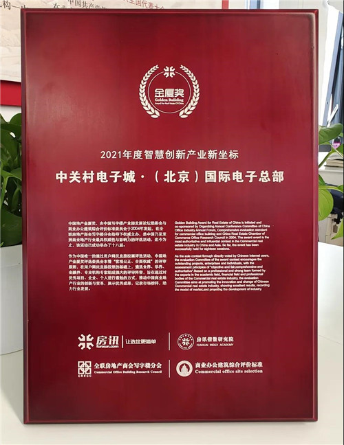 近日,由全聯(lián)房地產(chǎn)商會、房訊網(wǎng)聯(lián)合主辦的中國寫字樓產(chǎn)業(yè)園發(fā)展論壇第十八屆年會在北京成功舉辦,“2021年中國地產(chǎn)金廈獎”在會上重磅揭曉。電子城高科旗下優(yōu)質(zhì)科技創(chuàng)新平臺項(xiàng)目——中關(guān)村電子城·(北京)國際電子總部亮相本次大會,并榮獲“2021年度智慧創(chuàng)新產(chǎn)業(yè)新坐標(biāo)”稱號。