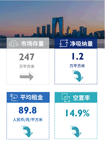 科技型企業(yè)租賃需求的活躍表現(xiàn)促進(jìn)全市甲級(jí)寫(xiě)字樓市場(chǎng)空置率環(huán)比微降0.5個(gè)百分點(diǎn);受部分商圈項(xiàng)目業(yè)主調(diào)整租金策略的影響,全市平均租金環(huán)比小幅下調(diào)至89.8元每平方米每月;