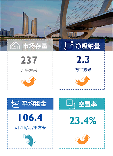 由于新增供應(yīng)于本季度交付入市,全市甲級(jí)寫字樓市場(chǎng)空置率環(huán)比上升至23.4%;為提高競(jìng)爭(zhēng)力,部分項(xiàng)目業(yè)主做出更多讓步以吸引優(yōu)質(zhì)租戶,使得南京甲級(jí)寫字樓市場(chǎng)平均租金環(huán)比小幅下調(diào);
