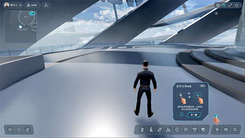 在元宇宙空間主界面的右下角工具欄還有一排小工具,包括麥克風(fēng)、攝像頭和下蹲、跳躍、思考等動作。