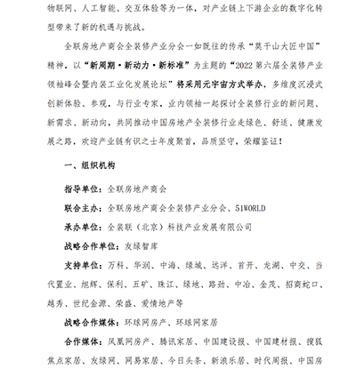 2022第六屆全裝修產(chǎn)業(yè)領(lǐng)袖峰會暨內(nèi)裝工業(yè)化發(fā)展論壇
