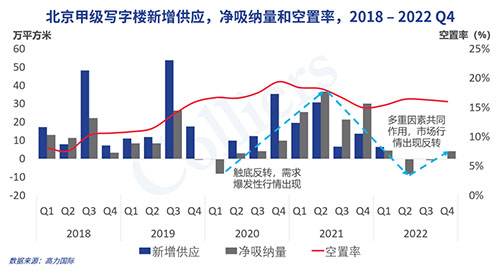 四季度北京再度受到疫情的影響,但無(wú)法阻止北京甲級(jí)寫(xiě)字樓市場(chǎng)需求的結(jié)構(gòu)性恢復(fù),第四季度市場(chǎng)凈吸納量已經(jīng)轉(zhuǎn)正,達(dá)到4.2萬(wàn)平方米,符合預(yù)判。