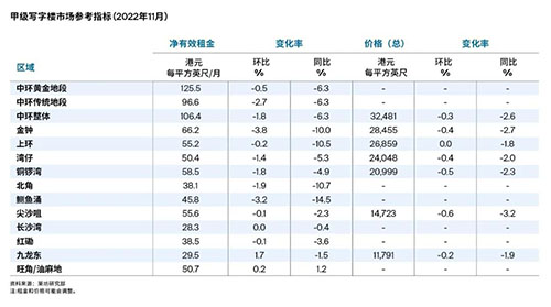香港島寫字樓繼續(xù)受到市場波動的打擊,租金跌幅加速。由于寫字樓租戶持觀望態(tài)度,11月租賃活動仍相對低迷。市場錄得數(shù)宗寫字樓升級案例。