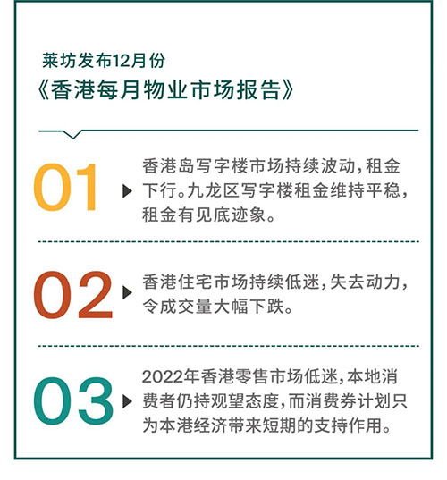 展望未來,預計到2025年,350萬平方英尺的新寫字樓供應將投入港島區(qū)的寫字樓市場,主要集中在中環(huán)和鲗魚涌。加上如今的高空置率,預計寫字樓租金將面臨進一步的壓力且繼續(xù)下行。我們預計2023年寫字樓需求將持續(xù)低迷,全年港島區(qū)整體租金將下跌3%至5%。