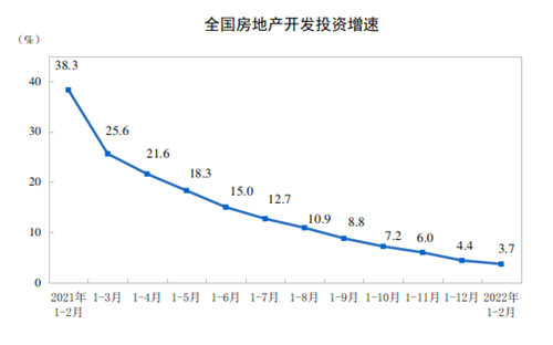 房訊網(wǎng)訊 3月15日,國家統(tǒng)計(jì)局發(fā)布2022年1-2月房地產(chǎn)市場數(shù)據(jù)顯示,前兩個月,全國房地產(chǎn)開發(fā)投資14499億元,同比增長3.7%;商品房銷售面積15703萬平方米,同比下降9.6%。