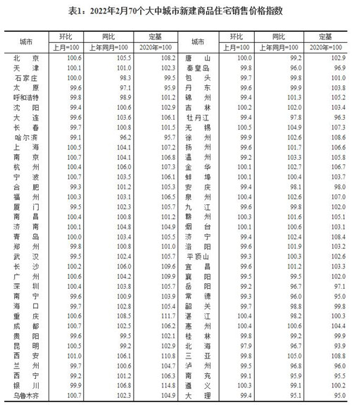 房訊網(wǎng)訊 3月16日,國家統(tǒng)計局發(fā)布2022年2月70個大中城市商品住宅銷售價格變動情況,國家統(tǒng)計局城市司首席統(tǒng)計師繩國慶解讀表示,2月份,70個大中城市中,一線城市新建商品住宅和二手住宅銷售價格環(huán)比上漲,二三線城市環(huán)比持平或下降;一二線城市商品住宅銷售價格同比漲幅回落或持平,三線城市同比下降。