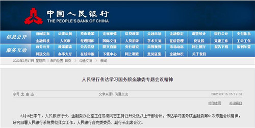房訊網(wǎng)訊 3月16日中午,人民銀行行長(zhǎng)、金融委辦公室主任易綱主持召開(kāi)會(huì)議,傳達(dá)學(xué)習(xí)國(guó)務(wù)院金融委第51次專題會(huì)議精神,研究部署人民銀行系統(tǒng)貫徹落實(shí)工作。