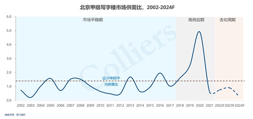 從2021年二季度開始,高力國際已表明整體市場需求報復性反彈不可持續(xù),凈吸納量將逐步回歸常態(tài),租金將在2021年底或今年一季度出現(xiàn)回暖。目前,2022年一季度的數(shù)據(jù)已印證了之前的判斷,同時,市場環(huán)境也在最近幾個月發(fā)生了新變化!笆紫,歷時四年的高供應時期已結束。2018年到2021年,市場年均新增供應量接近80萬平方米,今年的供應量將大幅減少。市場供需比在2020年觸及高點后已經大幅回落,未來也將維持在較低水平。其次,2021年近120萬平方米需求量注定成為北京寫字樓市場的里程碑事件。市場參與者需要避免慣性思維,冷靜判斷2022年出現(xiàn)的新變化,積極應對新時期的市場走勢。最后,去化周期已經開始,將至少持續(xù)3-4年,需求側強度將決定未來市場走勢。疫情的出現(xiàn)一定程度上提前了去化周期開始的時間。高力國際華北區(qū)副董事總經理陳難表示,“從2021年開始,市場已經進入去化周期,后續(xù)走勢取決于需求端的強度,大環(huán)境或將更有利于業(yè)主,留給企業(yè)租戶進行抄底的時間窗口期將越來越短。