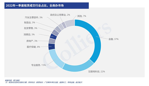 2021年一季度租賃成交行業(yè)占比,全商辦市場