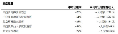 酒店經營方面,目前大悅城地產旗下有三亞美高梅度假酒店、三亞亞龍灣瑞吉度假酒店、北京華爾道夫酒店、三亞凱萊仙人掌度假酒店、北京大悅酒店等五家酒店運營,平均出租率在23%-77%不等。