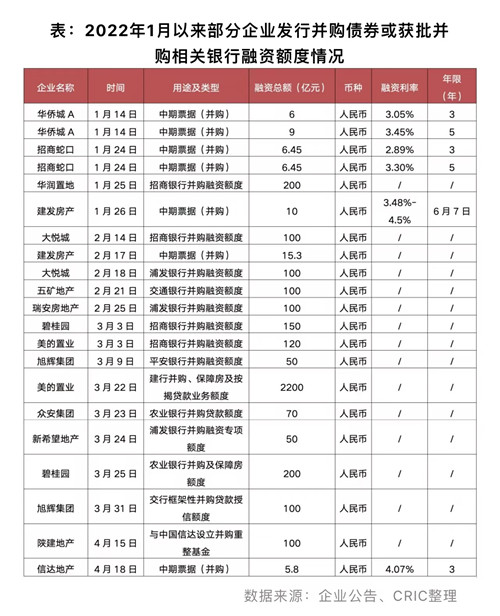 針對出險企業(yè)的并購融資,政策也給予了較大程度的支持,3月以來更多的房企與金融機構(gòu)建立了并購融資協(xié)議,獲得并購融資額度,除了華僑城、招商蛇口、建發(fā)房產(chǎn)、華潤置地、大悅城等央企國企成功發(fā)行并購中期票據(jù)或者獲批并購融資額度之外,另有旭輝、五礦地產(chǎn)、碧桂園、美的置業(yè)、新希望地產(chǎn)等民營企業(yè)并購融資額度獲批。克而瑞認為,受房地產(chǎn)市場持續(xù)轉(zhuǎn)冷及疫情反復(fù)影響,上半年整體市場依然不容樂觀。雖然政策暖風(fēng)不斷,目前已達“政策底”,但當前樓市不確定性仍然較強,未來房企之間資產(chǎn)的流動性會進一步加強,對于優(yōu)質(zhì)房企而言是一個好機會。