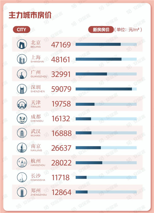 報告稱,3月65城新房線上均價為17547元/㎡,環(huán)比微跌0.08%,全國重點65城中有27城新房房價環(huán)比上漲。主力城市中,深圳新房線上均價為59079元/㎡,上海和北京分別為48161元/㎡和47169元/㎡,廣州為32991元/㎡。新一線城市中杭州和南京的新房線上均價分別為28022元/㎡、26637元/㎡。