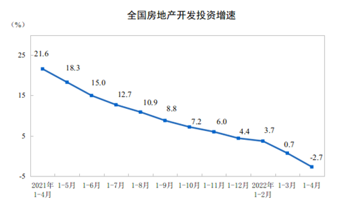1—4月份,全國(guó)房地產(chǎn)開(kāi)發(fā)投資39154億元,同比下降2.7%;其中,住宅投資29527億元,下降2.1%。