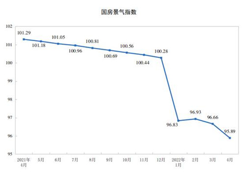 4月份,房地產(chǎn)開(kāi)發(fā)景氣指數(shù)(簡(jiǎn)稱“國(guó)房景氣指數(shù)”)為95.89。