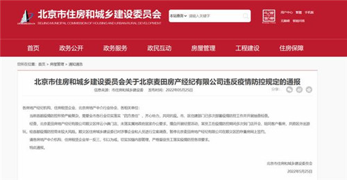 房訊網(wǎng)訊 5月25日,北京市住建委發(fā)布通報(bào),經(jīng)查,北京麥田房產(chǎn)經(jīng)紀(jì)有限公司順義區(qū)祥云小鎮(zhèn)門店,未落實(shí)屬地政府居家辦公要求,擅自開(kāi)展經(jīng)營(yíng)活動(dòng),某員工在疫情防控期間多次到門店開(kāi)會(huì)、陪同客戶看房,并跨區(qū)外出游玩,給首都疫情防控帶來(lái)較大風(fēng)險(xiǎn)。順義區(qū)住房城鄉(xiāng)建設(shè)委已對(duì)涉事企業(yè)和人員進(jìn)行立案調(diào)查,暫停北京麥田房產(chǎn)經(jīng)紀(jì)有限公司在順義區(qū)的存量房網(wǎng)上簽約。