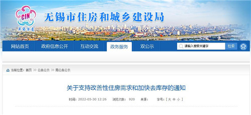 房訊網(wǎng)訊 5月30日,無(wú)錫市發(fā)布《關(guān)于支持改善性住房需求和加快去庫(kù)存的通知》,有效支持改善性住房需求,加快商品房去化,緩解房地產(chǎn)企業(yè)庫(kù)存壓力。