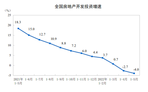 1—5月份,全國房地產(chǎn)開發(fā)投資52134億元,同比下降4.0%;其中,住宅投資39521億元,下降3.0%。