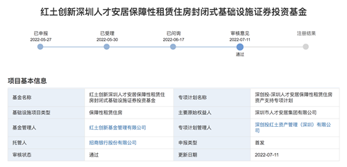 按照深交所公開的信息,此次獲得通過的紅土創(chuàng)新深圳人才安居保障性租賃住房封閉式基礎(chǔ)設(shè)施證券投資基金的主要原始權(quán)益人為深圳市人才安居集團(tuán)有限公司,基金管理人為紅土創(chuàng)新基金管理有限公司,專項(xiàng)計(jì)劃管理人為深創(chuàng)投紅土資產(chǎn)管理(深圳)有限公司,專項(xiàng)計(jì)劃名稱為“深創(chuàng)投-深圳人才安居保障性租賃住房資產(chǎn)支持專項(xiàng)計(jì)劃”。