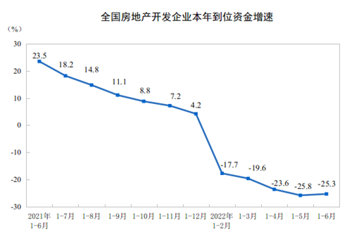 1—6月份,房地產(chǎn)開發(fā)企業(yè)到位資金76847億元,同比下降25.3%。其中,國內(nèi)貸款9806億元,下降27.2%;利用外資55億元,增長30.7%;自籌資金27224億元,下降9.7%;定金及預收款24601億元,下降37.9%;個人按揭貸款12158億元,下降25.7%。