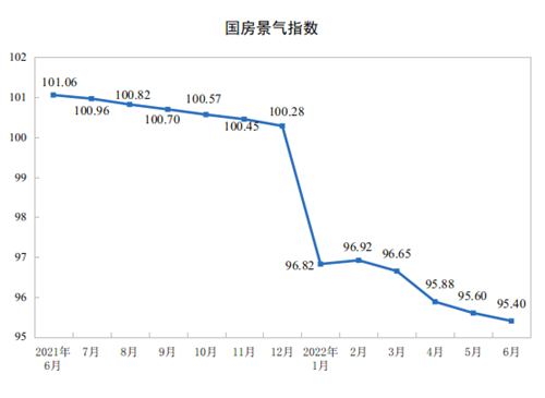 6月份,房地產(chǎn)開發(fā)景氣指數(shù)(簡稱“國房景氣指數(shù)”)為95.40。