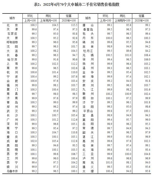 房訊網(wǎng)訊 7月15日,國家統(tǒng)計(jì)局發(fā)布2022年6月份70個(gè)大中城市商品住宅銷售價(jià)格變動(dòng)情況,