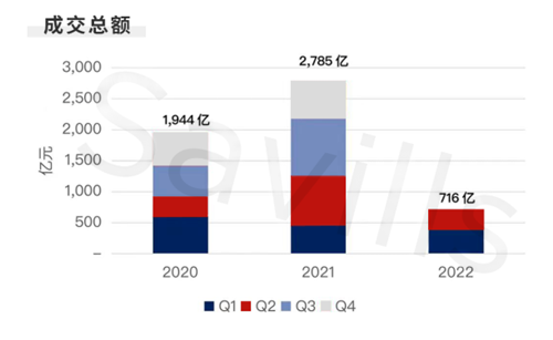 第一太平戴維斯近日發(fā)布2022上半年中國大宗交易市場回顧和展望指出,受疫情反復(fù)尤其是一線城市輪番封控影響,二季度投資市場整體活躍度減弱,導(dǎo)致上半年成交量表現(xiàn)平淡。數(shù)據(jù)顯示,上半年全國大宗交易成交總金額716億元,遠遜于去年同期,較疫情最初爆發(fā)的2020年也有所下降。