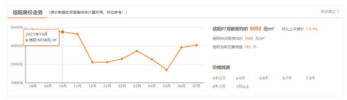 與河南信陽當(dāng)?shù)胤績r對比,安居客平臺數(shù)據(jù)顯示,7月信陽新房均價6002元/平方米,比上月增長0.1%,當(dāng)前在售樓盤183個。按此粗略計算,以買100平方米首套住房為例,約合總價60.02萬元。