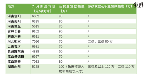 據(jù)澎湃新聞不完全統(tǒng)計,在上調(diào)公積金貸款額度的城市中,以職工(含家庭)首次購買100平方米的首套住房為例,參照當(dāng)?shù)匦路烤鶅r,至少包括河南信陽、河南南陽、河南商丘、湖南永州、吉林長春、安徽六安、河北衡水、云南普洱、貴州黔東南、江西景德鎮(zhèn)、江西高安等地公積金貸款最高貸款額度可基本覆蓋剛需購房金額。