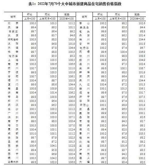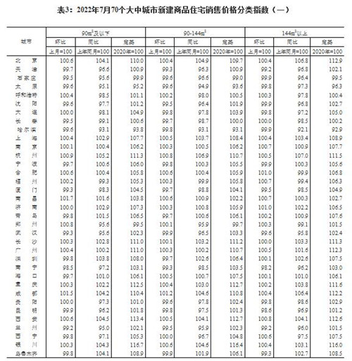 房訊網(wǎng)訊 8月15日,國家統(tǒng)計(jì)局發(fā)布2022年7月份70個(gè)大中城市商品住宅銷售價(jià)格變動(dòng)情況。國家統(tǒng)計(jì)局城市司首席統(tǒng)計(jì)師繩國慶解讀數(shù)據(jù)表示,7月份,70個(gè)大中城市中商品住宅銷售價(jià)格下降城市個(gè)數(shù)略增。