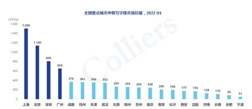 具體到北京來看,今年第一季度北京新增供應(yīng)量6萬5平方米,二季度則沒有新增供應(yīng)。需求端第一季度是4萬6平方米,二季度的數(shù)據(jù)則是負(fù)值,為-83000平方米,主要是北京因為疫情封控了一個月左右。疫情對整個行業(yè)的影響是比較大的,但是需要注意的是,一些品質(zhì)高的樓宇受到的影響相對會小一些,包括租金和空置率,這主要在于租戶的穩(wěn)定性。