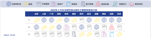 總的來說,金融和互聯(lián)網(wǎng)科技企業(yè)依舊是市場主要需求來源,去年北京互聯(lián)網(wǎng)高科技企業(yè)占到新增租賃客戶的50%以上,金融大概是20%到30%。預(yù)計到2022年第四季度,互聯(lián)網(wǎng)公司會有一定的復(fù)蘇,為商辦市場去化提供有力支撐。