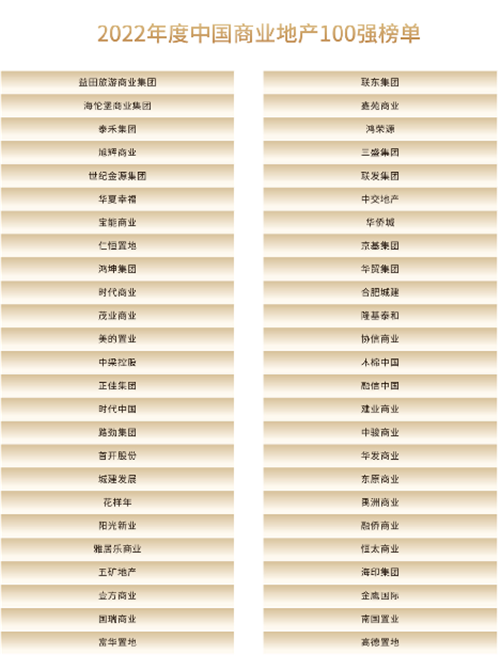 2022中國商業(yè)地產(chǎn)100強榜單選取在中國內(nèi)地從事商業(yè)地產(chǎn)經(jīng)營活動的100家房企,以2022年3月31日為統(tǒng)計時間點,涵蓋規(guī)模指標、 運營指標、管理指標、創(chuàng)新指標、品牌指標、誠信指標等6大指標,全面客觀評價企業(yè)的綜合實力與業(yè)務(wù)發(fā)展能力。