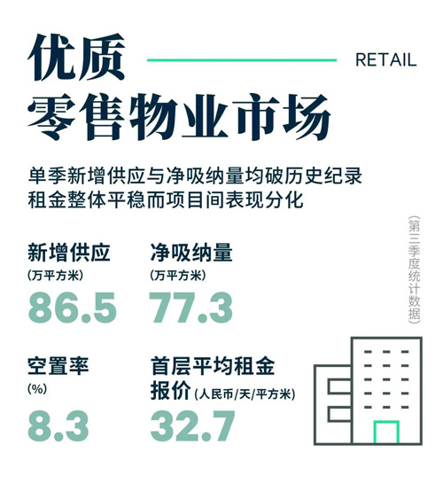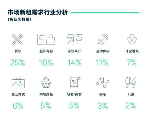 新開業(yè)項目多聚焦娛樂文化與精致家庭生活,以親子娛樂、地域美食、圈層社交、寵物友好等為主要招商理念吸引眾多餐飲、零售及生活方式品牌,如五棵松萬達的主題樂園MELAND CLUB亞洲旗艦店、龍湖北苑的本幫菜頭部選手桂滿隴、朝外THE BOX的MARSMART火星寵物超市等。既有項目方面,全國及北京首店在優(yōu)質(zhì)購物中心多點開花,餐飲類首店以融合菜、茶飲、烘焙等業(yè)態(tài)為主,如山居滿隴、茉莉奶白、RAPL現(xiàn)烤卡仕達蘋果派等,而零售類首店則包括運動品牌Icebreaker、潮流服飾MOF Girls'mall、集合店Shel'tter等。整體來看總新增需求中餐飲業(yè)態(tài)以25%的新店占比持續(xù)領(lǐng)跑,其次是茶飲果汁、運動休閑以及輕奢/高奢品類等。疫情后各大商業(yè)體持續(xù)進行業(yè)態(tài)結(jié)構(gòu)與品牌組合調(diào)整,季內(nèi)錄得多個高端品牌換位至首層優(yōu)質(zhì)鋪位。兒童體驗類業(yè)態(tài)遭遇復蘇疲軟,多家連鎖品牌縮減整合或閉店。全市凈吸納量在新增項目高開業(yè)率帶動下一洗上半年疲軟態(tài)勢,破歷史紀錄達77.3萬平方米,空置率環(huán)比小幅上漲0.2個百分點至8.3%。