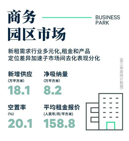 2023年第三季度,北京商務園區(qū)一共迎來三個新項目共計體量18.1萬平方米交付使用,其中兩個新增特色產(chǎn)業(yè)園區(qū)集研發(fā)辦公、部分生產(chǎn)制造功能于一體,均位于亦莊經(jīng)濟開發(fā)區(qū),分別定位醫(yī)藥健康和智能制造、集成電路產(chǎn)業(yè);而另一個類辦公項目則位于上地子市場,開發(fā)過程中已被頭部互聯(lián)網(wǎng)企業(yè)整體預租和定制。